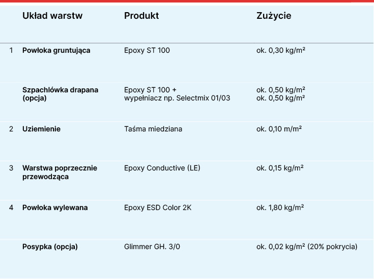 Powłoka wylewana, zgodna z ESD